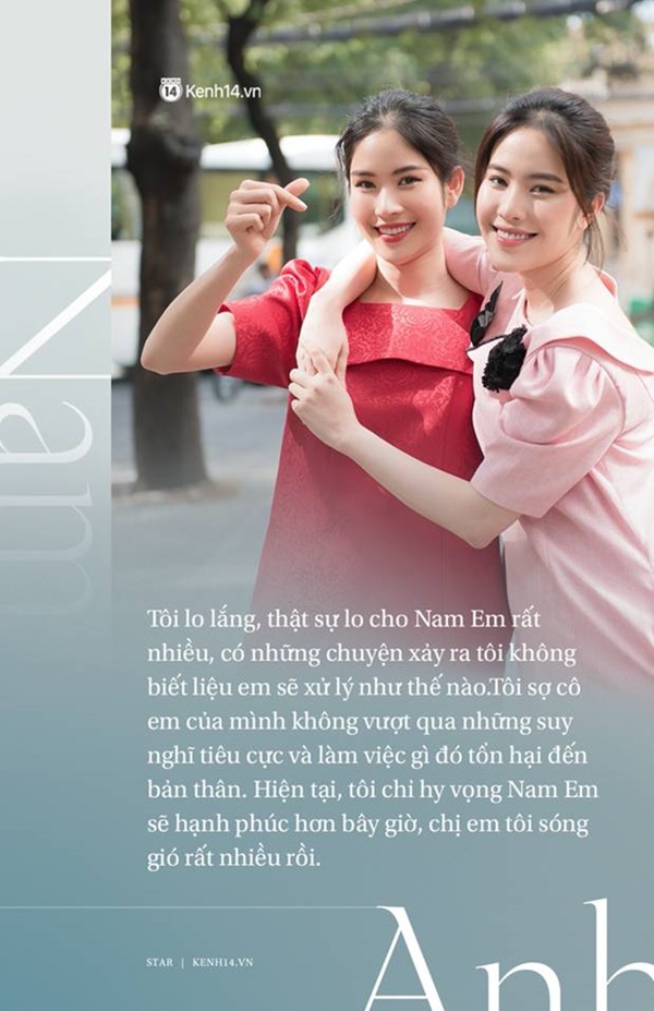 Nói không áp lực là nói xạo, tôi nhìn 1 người đẹp hơn mình đã thấy áp lực rồi chứ huống hồ gì là nhìn Nam Em. Việc tôi thay đổi suy nghĩ tích hơn, tập sống có định hướng và hoài bão hơn một phần cũng là vì Nam Em. Tôi biết cô em của mình đang gặp một vấn đề lớn mà chính em ấy cũng không gỡ rối được khiến người bị như tôi cũng rất lo lắng.