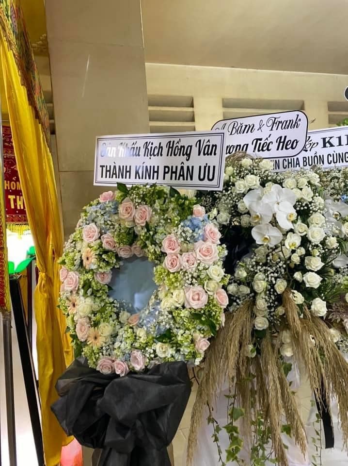 | Hoa viếng diễn viên quá cố. Ảnh: Hồng Vân |