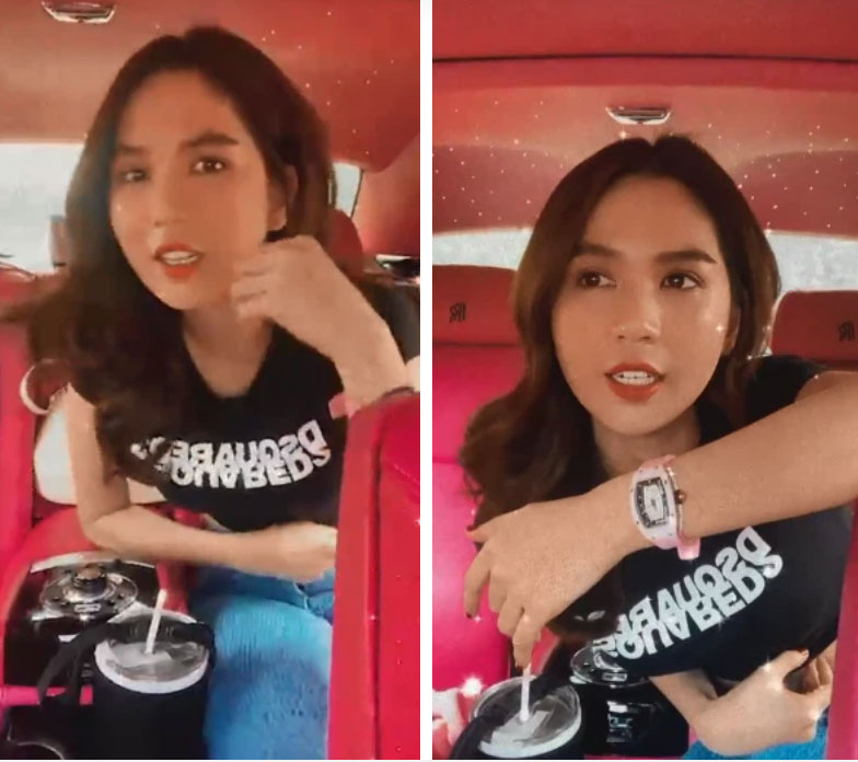 Ngọc Trinh di chuyển đến công trường bằng chiếc Rolls Royce, đeo trên tay đồng hồ tiền tỷ