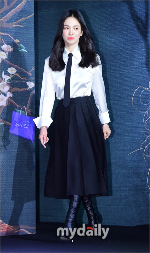 Xuất hiện tại sự kiện, Song Hye Kyo diện set đồ đen trắng trông trẻ trung và tươi tắn. Cô trang điểm đơn giản, tone tự nhiên, giúp cô trẻ trung hơn tuổi. Nhiều người bày tỏ sự ngưỡng mộ bởi nhan sắc xinh đẹp của Song Hye Kyo dù đã bước sang tuổi 40. Tuy nhiên, ở những khoảnh khắc cười, người đẹp vẫn lộ một vài dấu vết tuổi tác ở phần đuôi mắt và cằm.