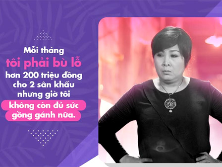 NSND Hồng Vân cho biết mỗi tháng chị bù lỗ hơn 200 triệu đồng cho 2 sân khấu kịch. Nếu hết năm tình hình vẫn không khả quan, “bà bầu” sẽ đóng cửa một nơi vì không đủ sức gồng gánh.