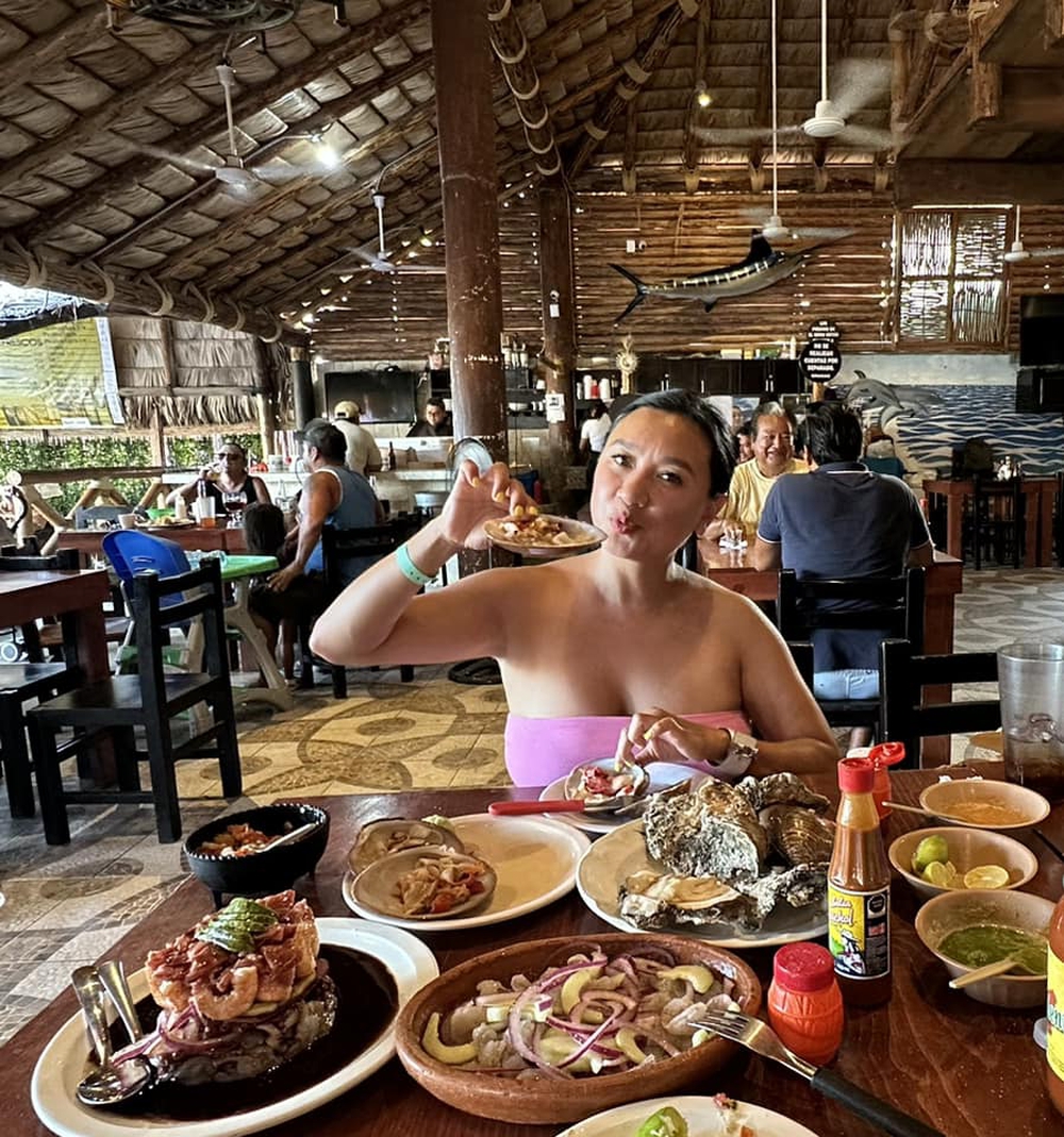Vì thế, người đẹp không ngại diện những bộ đồ bơi liền thân tuy nặng hơn 60 kg. Gần đây nhất, cô tự tin khoe vóc dáng trong bộ áo tắm màu đỏ khi đi nghỉ dưỡng tại thành phố Cabo San Lucas, Mexico.