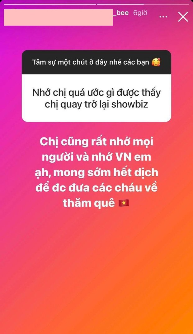 Đáng chú ý, sau 3 năm làm vợ nhà tài phiệt, người đẹp Hải Phòng cũng lên tiếng nói về dự định trở về Việt Nam làm việc. Theo đó, Phạm Hương cho biết cô đang rất nhớ Việt Nam và mong hết dịch bệnh để có thể đưa các con về thăm quê hương. Tuy nhiên, bà mẹ 2 con không nhắc về kế hoạch trở lại showbiz.