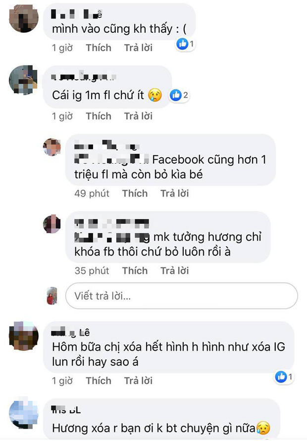 Cho đến mới đây, người hâm mộ lại không khỏi hoang mang khi phát hiện Phạm Hương đã xoá bỏ luôn tài khoản Intargram hơn 1 triệu follower. Hiện tại, "bà mẹ một con" chỉ còn giữ lại kênh đăng tải những khoảnh khắc đáng yêu thu hút gần 28 nghìn lượt theo dõi của bé Maximus. Sau loạt đồn đoán đời tư, những động thái liên tiếp của Phạm Hương khiến những người yêu thương cô vô cùng lo lắng. Còn nhớ, cách đây gần 2 năm, sau khi vướng loạt thị phi, nàng hậu cũng tuyên bố không dùng MXH và xoá luôn tài khoản Facebook để lui về "ở ẩn". Một số người hâm mộ còn cho rằng Phạm Hương chắc đang gặp chuyện không vui và ảnh hưởng đến tâm lí nên mới có những hành động thế này.