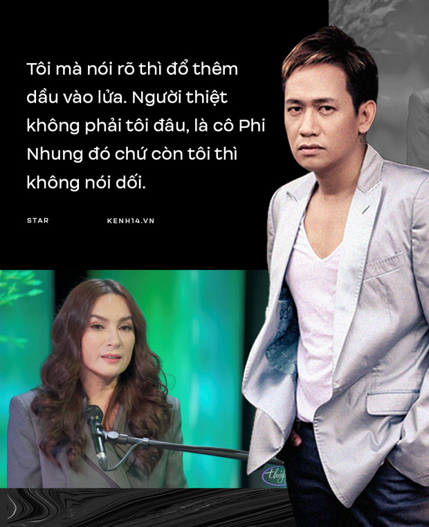 Tuy nhiên, có lẽ tôi sẽ không nói rõ đầu đuôi câu chuyện. Tôi mà nói rõ thì như đổ thêm dầu vào lửa, người thiệt không phải tôi đâu, là cô Phi Nhung đó. Còn tôi khẳng định không nói dối. Về sau trợ lý của Phi Nhung có gọi điện cho tôi thanh minh này nọ, tôi biết trợ lý Phi Nhung rất rõ. Tôi nghĩ thôi cứ để cho dư luận giải quyết vì không muốn chà đạp, triệt đường sống của ai làm gì.