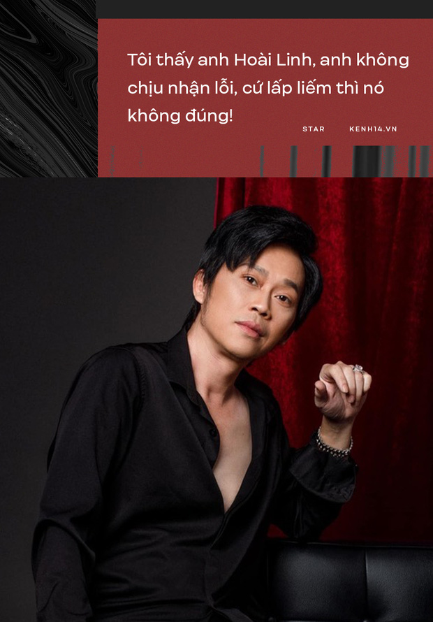 Về vấn đề từ thiện của NS Hoài Linh, là anh ấy sai hoàn toàn. Anh ấy đã đánh mất niềm tin của nhiều người. Tôi biết chuyện làm từ thiện trong showbiz vốn không phải như thế. Tôi nghĩ là tôi đã từng nói vấn đề từ thiện này rồi nhưng bị rất nhiều người chỉ trích, họ bảo tôi sân si. Tuy nhiên, tôi chỉ muốn nói cho khán giả hiểu ra vấn đề. Tôi nghĩ nghệ sĩ khi làm từ thiện chỉ nên chụp một cái ảnh của mình, sau đó kêu gọi quyên góp vào quỹ của những tổ chức uy tín, không nên kêu gọi từ thiện vào quỹ cá nhân.