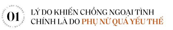 Chị không bao giờ sợ mất ai cả, chỉ là người ta sợ mất mình. Mình không sợ người ta đi mất mà cố tình để người ta đi thôi. Để chồng ngoại tình chắc chắn do người đàn bà. Mình làm bản thân quá yếu thế trước đàn ông hoặc làm cho họ thấy mình quá cần họ. Phụ nữ mà biết chăm sóc, truyền năng năng lượng tích cực cho đàn ông họ sẽ không bao giờ bỏ đi đâu", Phượng Chanel chia sẻ.