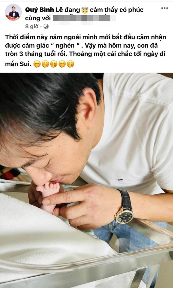 Đây là lần hiếm hoi nam diễn viên khoe khoảnh khắc bên con. Cho đến hiện tại, Quý Bình vẫn cảm xúc thiêng liêng trong lần đầu lên chức. Chỉ lộ đôi chân của nhóc tỳ, trộm vía trông bụ bẫm, lớn nhanh trông thấy. Bài viết trên nhanh chóng thu hút sự quan tâm của công chúng, ai nấy đều để lại bình luận chúc mừng: