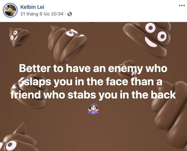 Cụ thể, trên trang cá nhân Kelbin Lei - stylist đồng thời cũng là bạn thân của Quỳnh Anh Shyn đã chia sẻ dòng trạng thái được xem là đang mỉa mai Chi Pu: "Better to have an enemy who slaps you in the face than a friend who stabs you in the back" (tạm dịch: Thà có một kẻ thù tát vào mặt bạn còn hơn là một người bạn đâm sau lưng bạn).
