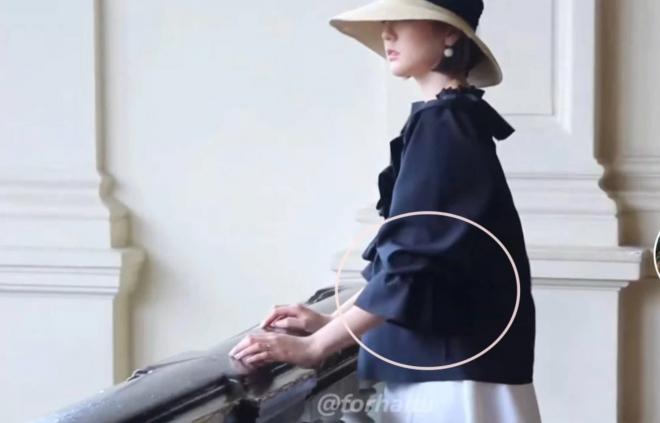 Mới đây nhất, cư dân mạng còn đào lại được hậu trường chụp ảnh của Hải Tú và phát hiện cô đang cố che khéo vòng 2 khá cẩn thận. Điều đáng nói là trong bộ ảnh này, Hải Tú ưu tiên chọn váy rộng thùng thình, ở góc nghiêng thì bụng lùm lùm thấy rõ. Không loại trừ khả năng 'nàng thơ' của sếp Tùng bị góc chụp 'dìm' nên trông tròn trịa khác thường.