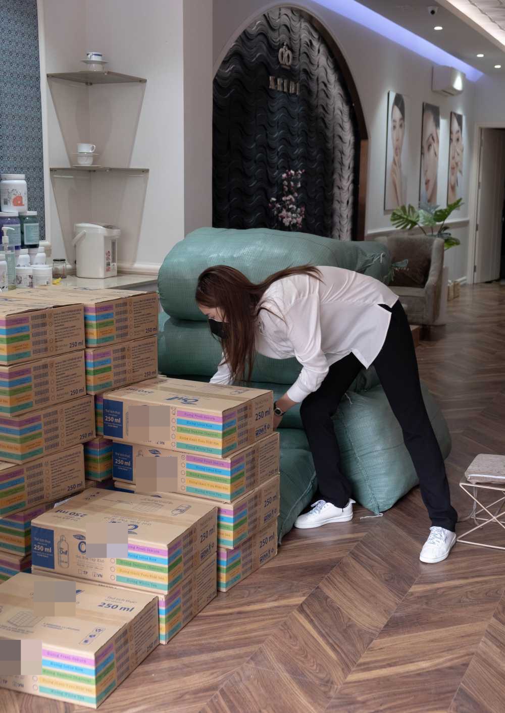Chuyến đi lần này Kỳ Duyên đã dành tặng 1.500 chai nước rửa tay dành cho chiến sĩ.