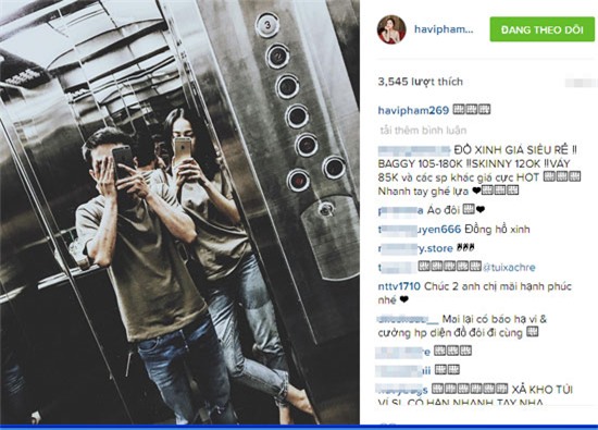 Mới đây nhất, trên trang cá nhân của mình Hạ Vi đăng tải hình ảnh cùng Cường đô la diện đồ đôi và tranh thủ selfie trong cầu thang máy cũng khiến fan thích thú.
