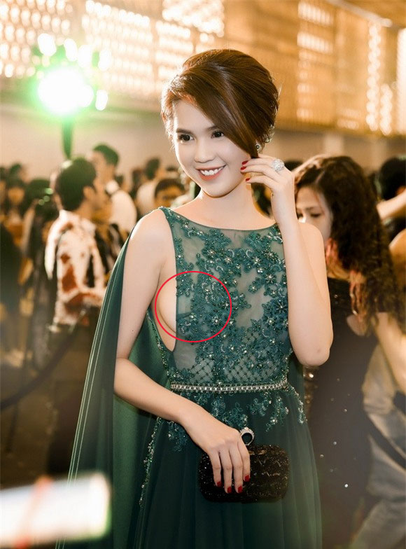 Tuy nhiên, đôi lúc do mải tạo dáng nên Ngọc Trinh không để ý, lớp váy mỏng tang đã không che kín được miếng dán ngực "phản chủ" lấp ló bên trong. Điều này đã khiến cư dân mạng vô cùng bức xúc.