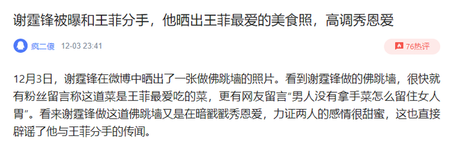 Cụ thể, trên trang cá nhân, Tạ Đình Phong đã chia sẻ bức hình chụp một món ăn chay. Đặc biệt, theo nhiều cư dân mạng thì đây là món ăn yêu thích của Vương Phi. Thậm chí có người còn bình luận phía dưới bài đăng rằng: “Làm sao đàn ông có thể giữ được cái bụng của người phụ nữ nếu nấu đồ ăn không ngon”.