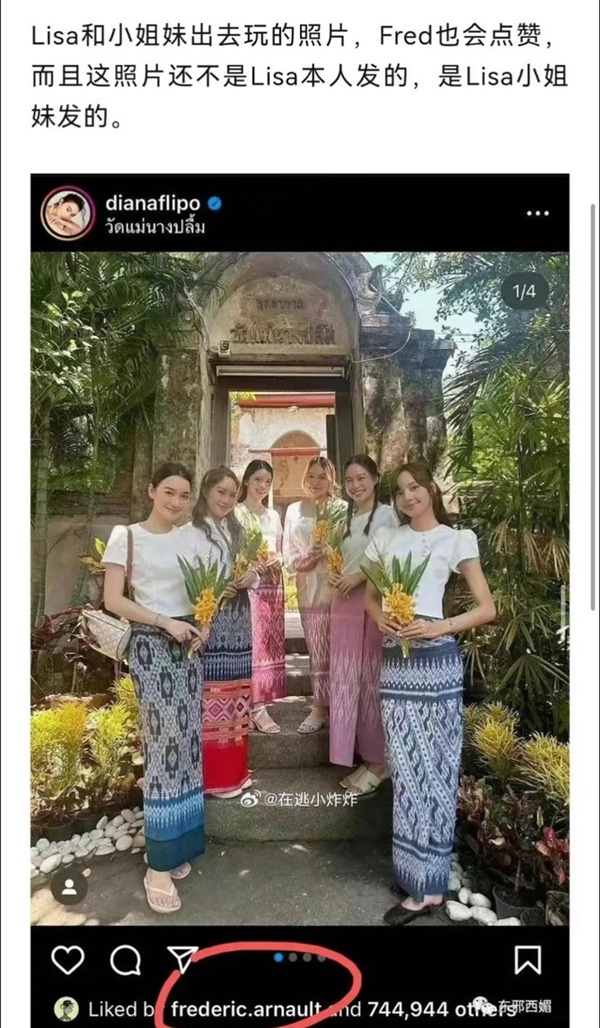Alexandre Arnault (anh trai Frédéric) từng nhấn like 1 bài đăng khen ngợi Lisa. Đáng nói, mới đây, Lisa được cho là đi du lịch cùng gia đình Alexandre Arnault. Từ đây, netizen cho rằng mỹ nhân BLACKPINK có mối quan hệ vô cùng tốt đẹp với "anh chồng"