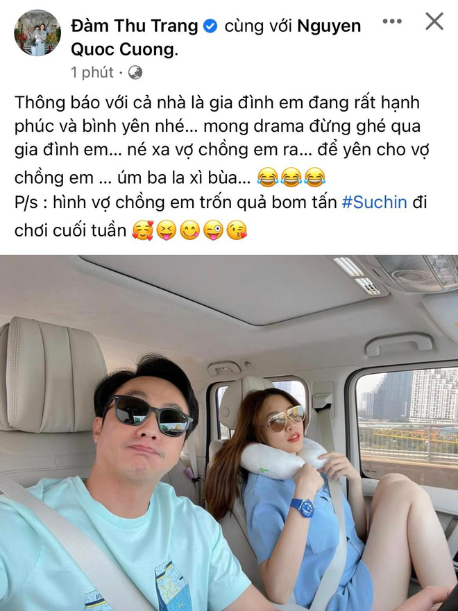 Tối cuối tuần, Đàm Thu Trang và Cường Đô La đang đèo nhau chill chill trên con xe bạc tỷ mà cũng chẳng yên. Không để dân tình thêm hoang mang, cả hai đồng loạt có chia sẻ thẳng thắn trên mạng xã hội để phủ nhận những tin đồn.