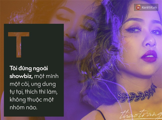 Đi ngược lại quan điểm của đám đông, xem mình là một cá thể đặc biệt, Thảo Trang hiển nhiên cảm thấy rõ nét mình là một phần rất nhỏ trong môi trường showbiz. Danh xưng này mang đến một ấn tượng trong lòng khán giả, khiến họ nhớ đến cô nhiều hơn, nhưng đồng thời cũng hạn chế một số cơ hội trong công việc.