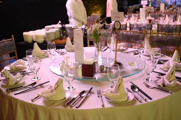 Bàn tiệc cũng được trang trí khá bắt mắt và ghi thông tin bàn bạn của cô dâu hay chú rể.