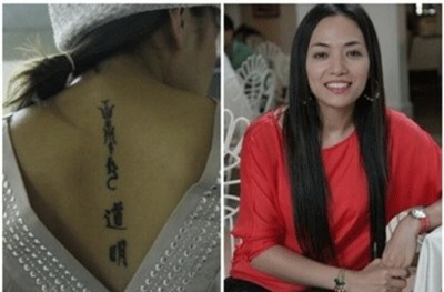 Ca sĩ Tinna Tình với hình xăm tên vị thầy đã giúp cô vượt ngải.