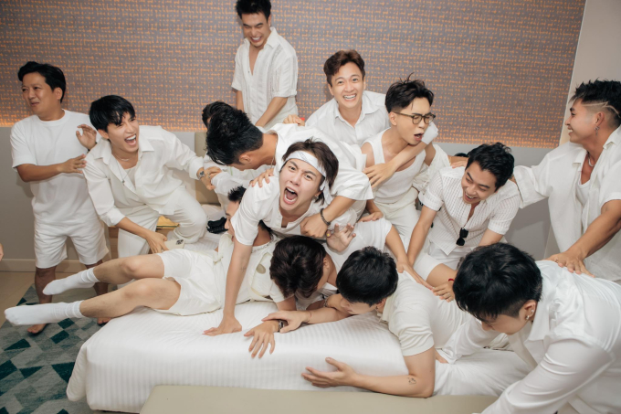 Trên trang cá nhân mới đây, Gin Tuấn Kiệt đã xả kho loạt ảnh cực nhí nhố cùng với dàn sao đình đám như Trường Giang, Ngô Kiến Huy, Lê Dương Bảo Lâm, Jun Phạm, Anh Tú, S.T... Cả hội diện trang phục trắng, kéo nhau chụp ảnh từ trong phòng ra đến bể bơi. Quy tụ những "cây hài" của Vbiz nên bộ ảnh tiệc độc thân của Gin Tuấn Kiệt "không thể bình thường". Bên cạnh tấm hình khoe visual thì loạt khoảnh khắc lầy lội của hội bạn chú rể khiến netizen không thể nhịn cười.