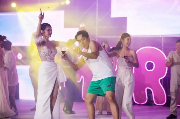 Nếu ở lúc làm lễ, Minh Hằng và dàn khách mời lộng lẫy, sang chảnh bao nhiêu thì đến tiệc nhảy đầm lại bung xõa thả ga bấy nhiều. Ngoài những tiết mục văn nghệ nhảy nhót tưng bừng của cô dâu Minh Hằng đích thân mang đến, dàn sao Việt quậy bung nóc tưng bừng cũng thu hút sự chú ý của dân tình.