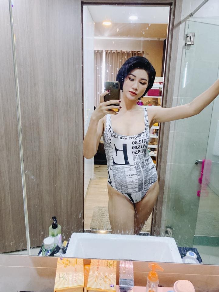 Trang Trần vẫn tự tin diện đồ bơi dù vòng eo 109 cm.