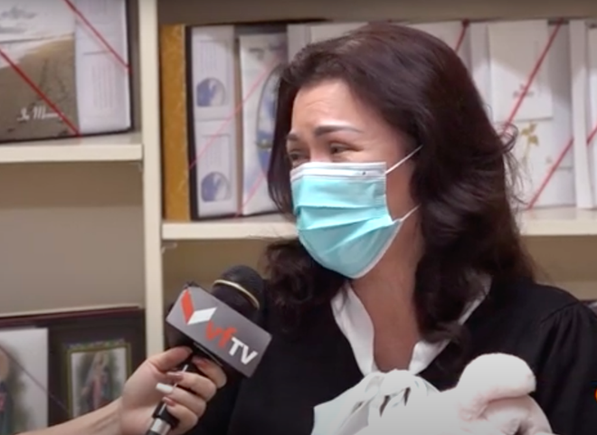 Trong cuộc phỏng vấn được phát trên kênh Thúy Nga Paris, vợ cố nghệ sĩ Chí Tài mặc một bộ đồ đen, nửa gương mặt che kín khẩu trang để đảm bảo an toàn sức khoẻ cộng đồng khi dịch bệnh covid-19 vẫn đang diễn biến phức tạp, nhưng đôi mắt của chị đẫm lệ, thần sắc vô cùng mệt mỏi.