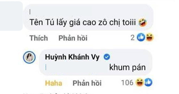 Đặc biệt bên dưới phần bình luận, khi có cư dân mạng bình luận "tên Tú lấy giá cao vô chị tôi"; lập tức bà xã Phan Mạnh Quỳnh phản hồi rằng: Khum bán!