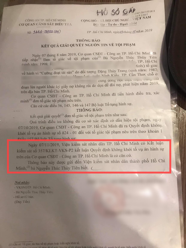 Cô tung luôn giấy phán quyết của toà án sau khi bị Thuỳ Tiên kiện tụng