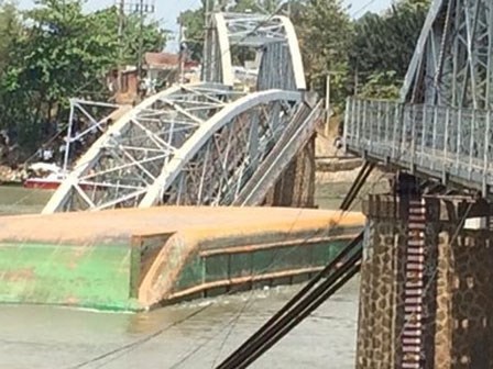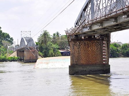 Chiếc sà lan chạy trên sông Đồng Nai thì va vào móng cầu Ghềnh khiến 2 nhịp cầu gãy sập.
