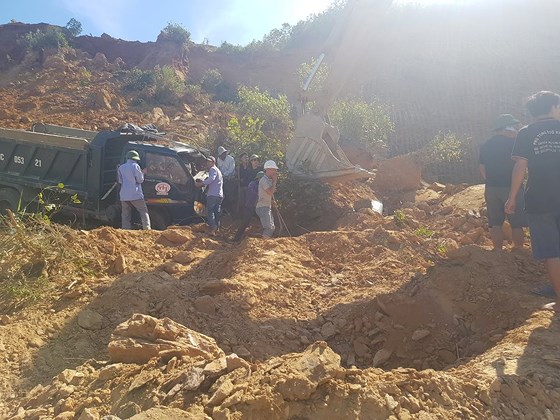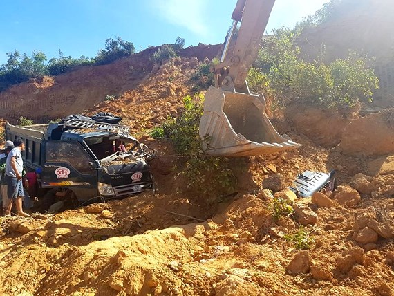 Đất đổ sập vùi lấp xe ô tô tải tại hiện trường