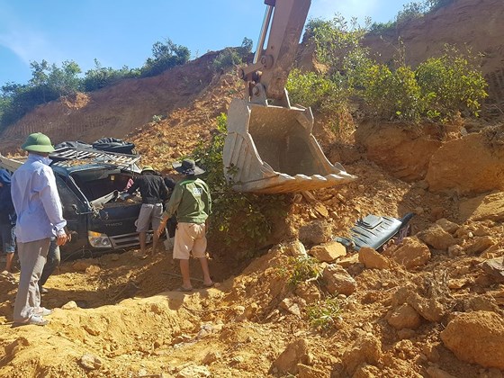 Ngay sau khi sự việc xảy ra, cơ quan chức năng, chính quyền địa phương, các tài xế và người dân đã có mặt tại hiện trường sử dụng các dụng cụ, phương tiện, máy xúc, máy đào... để triển khai các phương án giải cứu tài xế đang bị mắc kẹt trong ca bin xe.