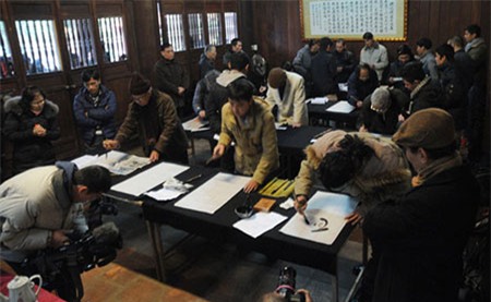 Theo quy chế thi sát hạch, người viết không được tra từ điển hoặc hỏi chữ người bên cạnh. Tuy nhiên, nhiều ông đồ vẫn vi phạm quy chế này |