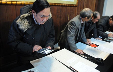 Trong cuộc thi sát ông đồ lần thứ 2, nhiều ông đồ không nhớ chữ Hán – Nôm đã giở từ điển, điện thoại tra từ và bị đánh dấu bài.