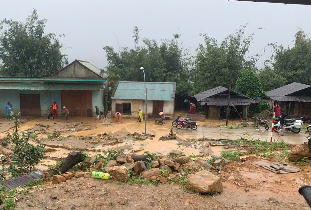Tại xã biên giới A Vương vẫn tiếp tục mưa lớn, sạt lở ngập lụt nhiều điểm. Ông Briu Quân - Chủ tịch UBND xã A Vương cho biết, trưa nay 29/10 tuyến đường Hồ Chí Minh đoạn qua địa bàn ngập sâu phương tiện không thể lưu thông; nhiều điểm sạt lở đe dọa nhà dân. Trong sáng nay xã đã di dời khẩn 21 hộ/69 nhân khẩu trong khu vực sạt lở và ngập lụt đến nơi an toàn...