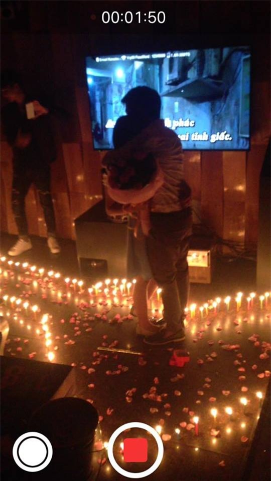 Theo đó, buổi cầu hôn diễn ra tại một quán karaoke. Chàng trai xếp hàng trăm cây nến thành hình trái tim, rải cánh hoa từ cửa vào trong căn phòng. Khi đó, chàng trai hát bài Làm vợ anh nhé của ca sĩ Chi Dân. Sau đó, cô gái được một bạn nữ che mặt và dắt tay bước tới cửa. Không nén được cảm xúc, cô gái vừa cười, vừa rơi nước mắt bước tới chỗ chàng trai