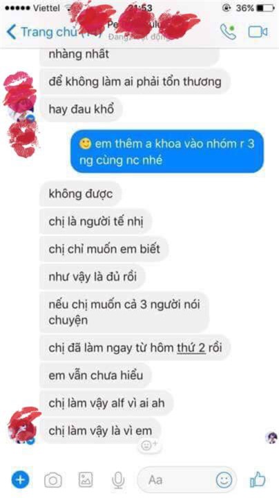 Trong đoạn tin nhắn đầu tiên, cô gái lạ mặt nói với Ái Thi rằng "Chị nghĩ chắc em không muốn quen một người như vậy đâu", đồng thời còn thể hiện mình đã đọc được đoạn chat riêng tư của Ái Thi và Anh Khoa, chứng minh mối quan hệ rất thân thiết của cả hai. Người này còn bóng gió rằng: "Cái câu em tin anh của em làm chị thấy buồn cười..."