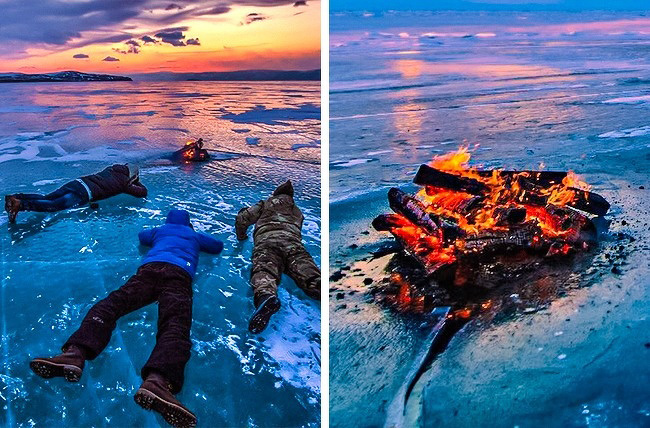 Chụp xong không chạy nhanh lại được tắm sông băng.