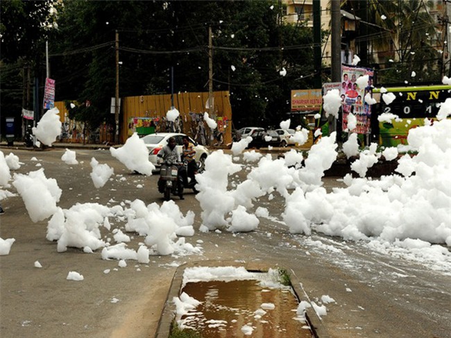 bọt trong hồ Varthur Lake – vốn được hình thành do nguồn nước bị ô nhiễm