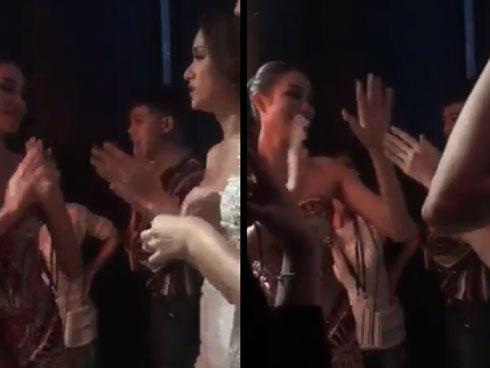 Sau hình ảnh 'chị em mến thương" trong hậu trường, đoạn clip được cho là Phạm Hương cố tình chắn lối không cho Hương Giang Idol đứng ngang hàng đang được lan truyền chóng mặt.