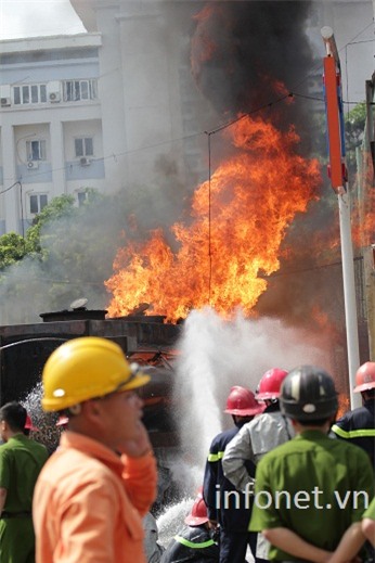 Trước đó, vào 13h30 ngày 3/6, sau tiếng nổ lớn, lửa bốc cháy ngùn ngụt tại xe bồn chở xăng tại cây xăng 2B Trần Hưng Đạo, đối diện cổng bệnh viện 108, Hà Nội. 2 lính cứu hỏa, 3 nhân viên cây xăng và một cháu bé đã bị thương.