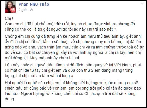 Lần này chắc chị quyết tâm lắm khi đã đích thân quay về lại Việt Nam, phải có mặt chị để tự tay chị giết em và đứa con thứ 2 em đang mang trong bụng, thì chị mới an tâm và hài lòng ạ.