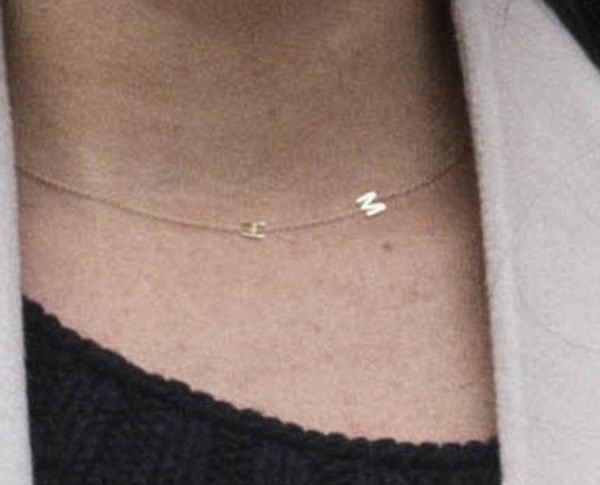 Cụ thể, hồi tháng 12/2016, diễn viên người Mỹ Meghan Markle từng gây xôn xao khi được phát hiện đeo dây chuyền vàng 14 carat của nhà thiết kế Maya Brenner có hai chữ cái đầu là tên của cô và Hoàng tử Harry khi đi mua sắm ở Toronto, Canada. Chiếc dây chuyền được cho là một món quà hoàng tử Anh tặng bạn gái.