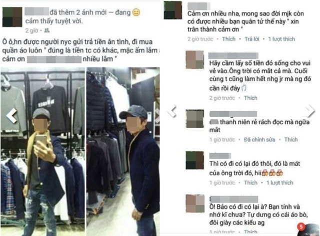 Thậm chí, điều khiến dân mạng thêm bức xúc chính là việc sau đó anh chàng này còn đăng tải lên facebook hình ảnh mua áo mới với nội dung: "Hôm nay được người yêu cũ trả tiền ân tình, đi mua quần áo luôn. Đúng là tiền tình cảm có khác, mặc ấm lắm, cảm ơn K.K.K nhiều lắm"