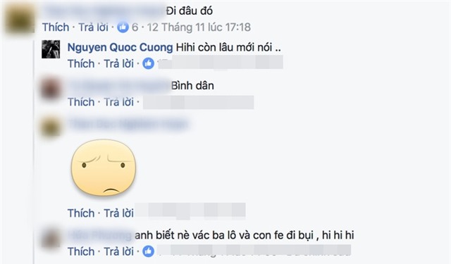 Không biết vô tình hay cố ý nhưng sự trùng hợp của Vi Cường đang khiến nhiều người tò mò đặt nghi vấn phải chăng cặp đôi lại trục trặc tình yêu. Hơn thế, trạng thái của cặp đôi lại xảy ra ngay sau khi vợ cũ Hà Hồ mượn xe Cường Đô La xuất hiện ở live show của Noo cách đây 3 ngày. Nhiều bạn bè đã tò mò gửi thắc mắc tới Quốc Cường: Đi đâu đó. Đáp lại người hỏi, Quốc Cường trả lời đầy tinh nghịch: Hihi đi đâu còn lâu mới nói.