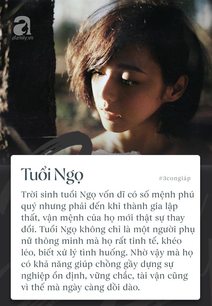 Tuổi Ngọ vốn dĩ là những người có tính cách hướng ngoại và luôn thích sáng tạo một mình. Đa số họ là những người phải sống xa gia đình mới mong tạo dựng được sự nghiệp ổn định. Trời sinh tuổi Ngọ có tính cách mạnh mẽ, bản lĩnh và luôn lạc quan, biết hướng về tương lai để tạo ra những điều mới mẻ. Thuở thiếu niên, tuổi Ngọ chăm chỉ, nỗ lực tuy nhiên do không gặp được vận may nên họ chưa vẫn chưa có bước đột phá. Đặc biệt, sau khi kết hôn, vận mệnh của tuổi Ngọ sẽ thay đổi hoàn toàn. Trời sinh tuổi Ngọ vốn dĩ có số mệnh phú quý nhưng phải đến khi thành gia lập thất, vận mệnh của họ mới thật sự thay đổi. Tuổi Ngọ không chỉ là một người phụ nữ thông minh mà họ rất tinh tế, khéo léo, biết xử lý tình huống. Nhờ vậy mà họ có khả năng giúp chồng gầy dựng sự nghiệp ổn định, vững chắc, tài vận cũng vì thế mà ngày càng dồi dào, con cái lớn lên thành đạt nên người. Nhìn chung, một khi đã kết hôn thì cuộc sống hôn nhân của tuổi Ngọ viên mãn đến hết đời.