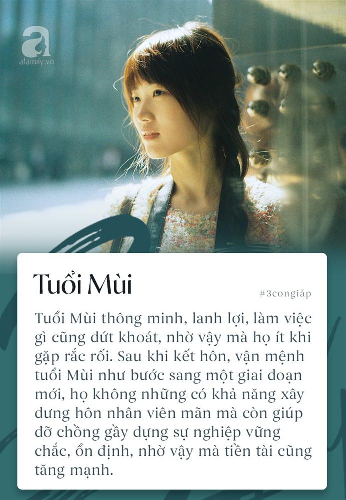 Trời sinh tuổi Mùi vốn là người hiền lành, nhẹ nhàng, luôn đặt cảm xúc lên hàng đầu, vì vậy họ được nhiều người yêu mến. Mặc dù vậy nhưng tuổi Mùi có lối sống thực tế, họ không mơ mộng và hiểu được giá trị của cuộc sống. Tuổi Mùi không mưu cầu lợi lộc, chỉ cần có cuộc sống bình yên là đủ. Tuổi Mùi thông minh, lanh lợi, làm việc gì cũng dứt khoát, nhờ vậy mà họ ít khi gặp rắc rối. Sau khi kết hôn, vận mệnh tuổi Mùi như bước sang một giai đoạn mới, họ không những có khả năng xây dưng hôn nhân viên mãn mà còn giúp đỡ chồng gầy dựng sự nghiệp vững chắc, ổn định. Điều đặc biệt, nếu sinh được con, bất kể là trai hay gái thì gia đình lại tiếp tục thịnh vượng rực rỡ, gặp nhiều may mắn. Sau 50 tuổi, những người tuổi Mùi thường có cuộc sống an nhàn, không lo lắng, phiền não, chỉ cần hưởng phước con cháu, vợ chồng hạnh phúc đến răng long đầu bạc.