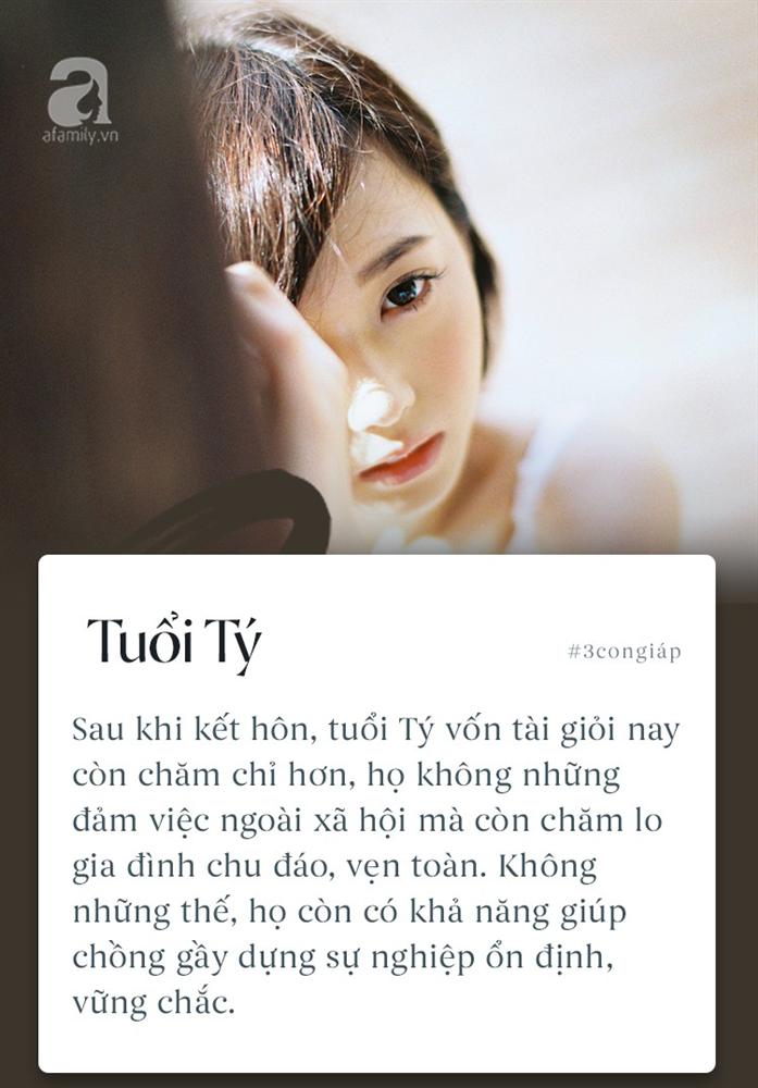 Trong số những con giáp, tuổi Tý là người có tính cách độc lập và luôn biết làm chủ cuộc sống của mình. Bất kể là người độc thân hay là có gia đình, họ luôn có một nền tảng vững chắc để có thể bảo vệ bản thân và những người xung quanh. Đặc biệt là phụ nữ tuổi Tý, họ bản lĩnh hơn những gì người khác nghĩ. Tuổi Tý biết kiềm tiền và cũng biết quản lý tài chính, vì vậy họ hiếm khi rơi vào hoàn cảnh khó khăn, túng thiếu. Bên cạnh đó, sự mạnh mẽ của tuổi Tý hoàn toàn giúp họ vượt qua mọi thử thách và đạt được thành công như mong đợi. Sau khi kết hôn, tuổi Tý vốn tài giỏi nay còn chăm chỉ hơn, họ không những đảm việc ngoài xã hội mà còn chăm lo gia đình chu đáo, vẹn toàn. Không những thế, họ còn có khả năng giúp chồng gầy dựng sự nghiệp ổn định, vững chắc. Nếu sinh con thì đứa nào cũng tài giỏi, ngoan ngoan, điều đặc biệt, sự xuất hiện của chúng càng đem đến nhiều may mắn cho bố mẹ.