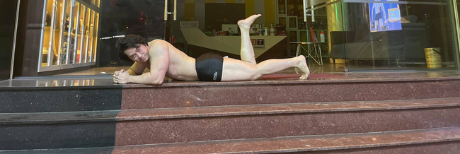 Duy Nguyễn gần như khá tự tin để khoe body săn chắc và nước da trắng trẻo ở ngay cửa ra vào phòng gym của mình.