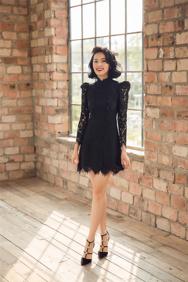 Bộ váy ren đen tay phồng, kín cổ hoàn toàn phù hợp với thời trang những ngày cuối năm ở cả hai miền Bắc – Nam